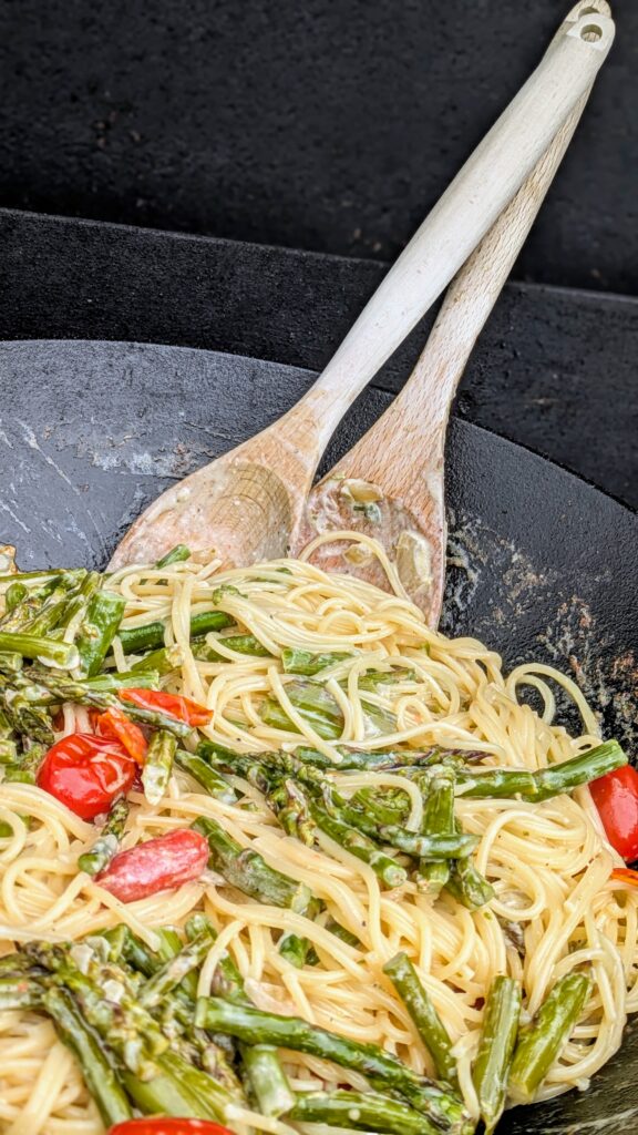 Auch in der Spargelzeit ist Grillzeit. Und kochen im Wok auf dem Grill ist auch irgendwie Grillen. Oder kochen?